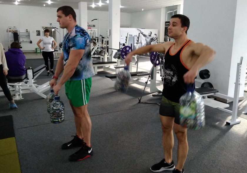 Организовали акцию и сняли репортаж для ТВ - бодибилдеры поднимают собранные отработанные батарейки. Вот одна фотка: