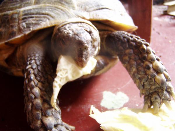 Да,точно дальняя ,но родственница:) У меня их две.Эта девочка,а есть еще пацан,но уже догнал старушку в размерах.только он сейчас спит,а тортила лазила целый день.Капусту немного поела,маеться.Их надо мыть теплой водой и кормить капустой,яблоками и одуванчик летом обязательно.Черепах любит тертую морковь и подъедает за сойкой все подряд.Один раз еле успела вытащить косточку из горла,чуть не удавился,но упрямо не хотел бросать,старался съесть.Обжора тот еще.
