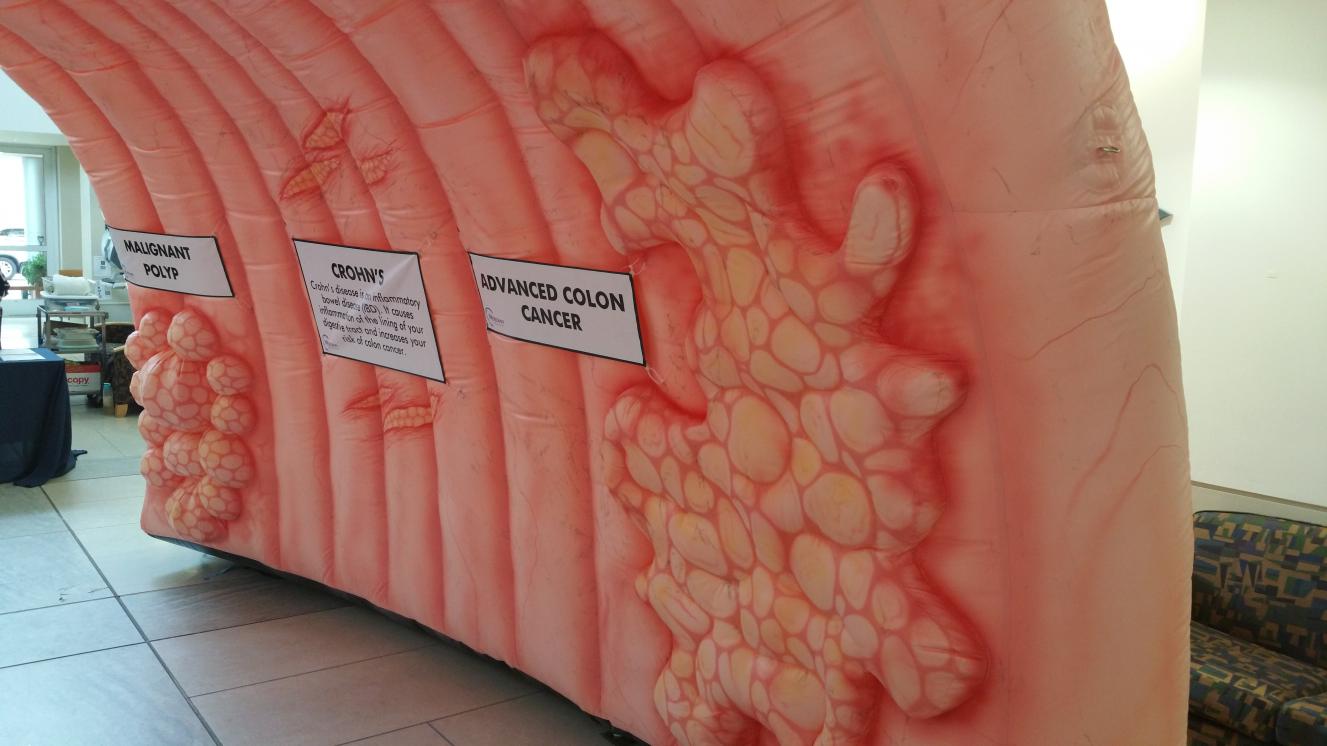 Макет моей болячки. Народ ходит, рассматривает, на столах выложены разные буклеты как распознать болезнь,как правильно питаться, как уберечь себя и т.д. Доктор Лэйк читал лекцию о колоректальном раке, присутствовали также химиотерапевты и радиологи.Отвечали на вопросы. Короче, вечер удался. :rolleyes: |