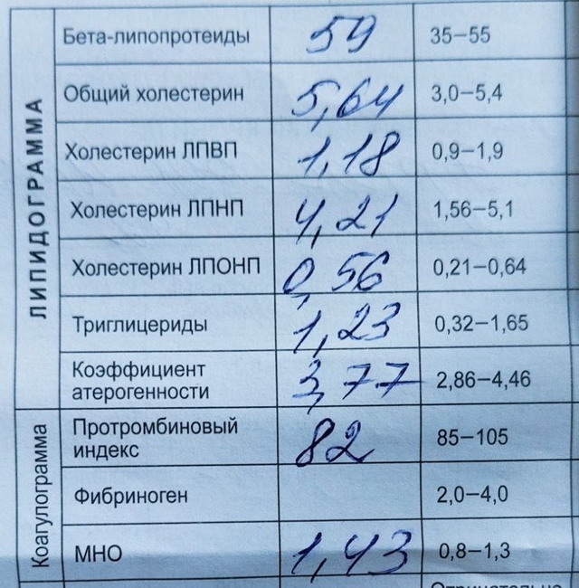 Липидограмма и Коагулограмма мои, превышен общий холестерин и МНО.
