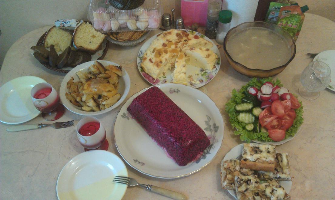 Вот наш пасхальный стол, я правда не верующий человек, но посидеть с друзьями на этот праздник - люблю, да и всякие куличи и пасхи - люблю.
