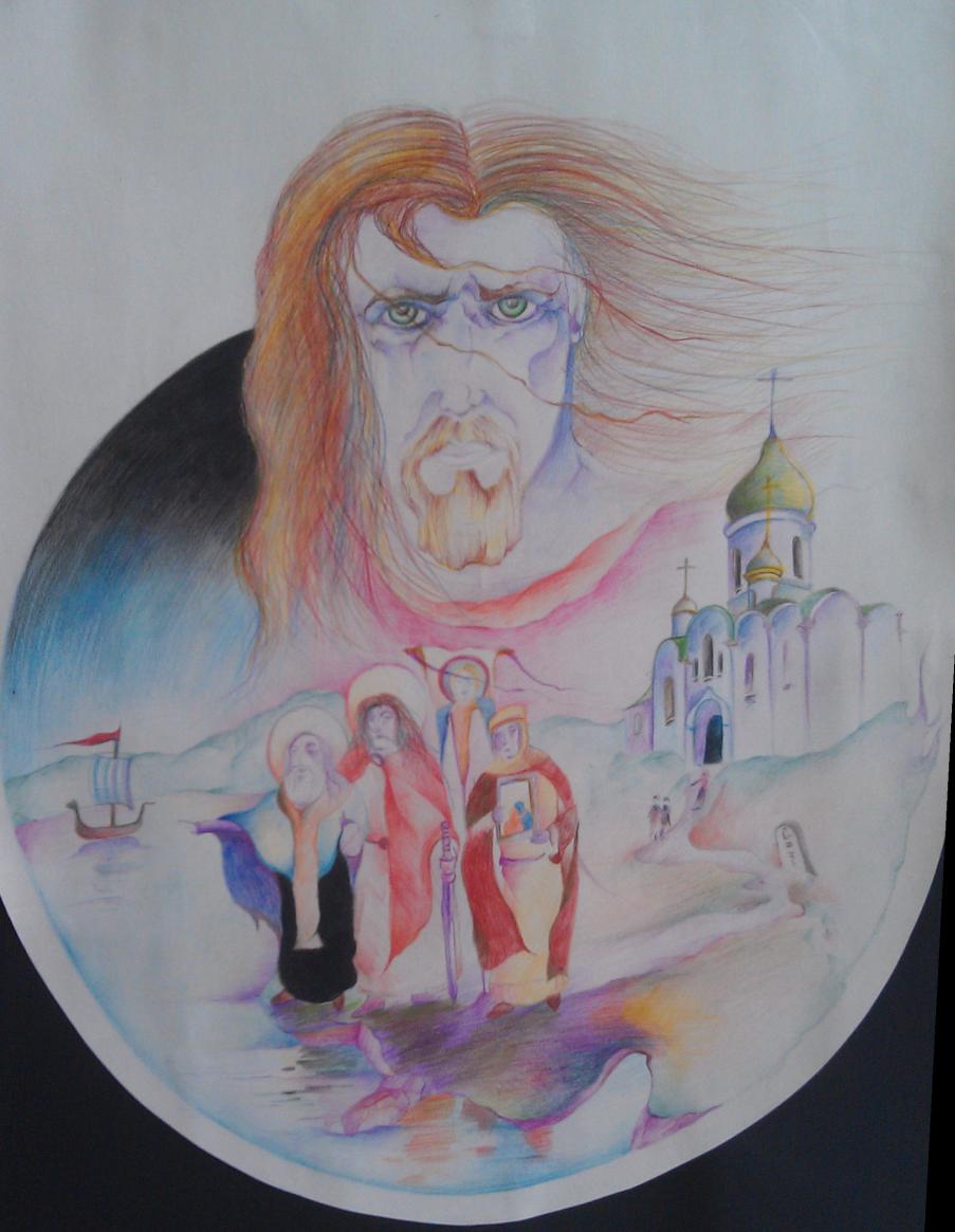 Очень нравиться картина парня в моём городе, ему 14 лет. Наверное вырастет знаменитым художником. Я назвал картину "Апостол Христа".