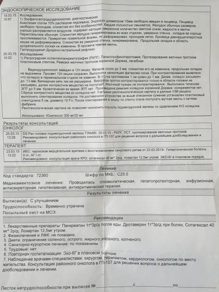 У меня заболела бабушка. Вся сложность в том, что она не хочет проводить дальнейшую диагностику и я не знаю как ей помочь. Она госпитализировалась 2 раза за последние 3 месяца. Ей 76 лет. Первый раз, 17 февраля, диагноз - хронический панкреатит, острой стадии. Все анализы хорошие, рак не обнаружен. Второй раз, 30 марта, ее выписали с диагнозом рак головки поджелудочной железы Т3NxM0, стадия не установлена. Плюс к этому Гипетроническая болезнь III ст., высокий риск. Про этот диагноз она не знает (я решила ей не говорить и теперь не знаю правильно это или нет. У нее совсем недавно умерла подруга от этой заразы и она была под таким впечатлением! Сейчас она только и твердит, что не хочет быть мне обузой и поскорее бы выздороветь, а если ей сказать, то она совсем упадет духом) Она очень слабая, плохо ест, аппетита нет. Постоянные боли, особенно после еды. Обезболивающие не помогают, последнее время пила баралгин, но он тоже уже не действует. Какую-либо операцию делать отказывается наотрез. В больнице ей сделали протезирование желчный протоков пластиковым стентом. После этого желтуха прошла, но она почти перестала ходить. Я не знаю чем ей помочь, т.к. она отказывается от всех дополнительных исследований. В больнице, до момента выписки, врачи говорили, что все хорошо и маркеры на онкологию брали - ничего не находили. Я думаю, можно ли мне одной с бабушкиной выпиской обратиться к онкологу? В поликлинике меня одну вряд-ли примут без нее, поэтому может посоветуете куда бы я могла обратиться? Платные консультации? Буду очень благодарна за любые советы! |