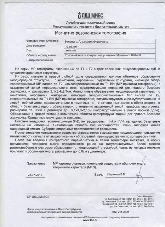 Добрый вечер! Началось всё с того что маме удалили родинку.Спустя 2 года на месте родинки,мама нащупала уплотнение.Обследовали,положили на операцию,удалили несколько лимфоузлов,1 оказался злокачественным.МРТ и КТ не назначили, вообще ничего не сказали.После этого у мамы немного побаливала голова,ей сказали,что несколько недель это будет нормой.23 июля в НИИ онкологии сделали МРТ. Врач сказал,что большие метастазы можно оперировать,маленькие придётся удалять специальным ножом с радиацией,потом химиотерапия.Маму положили в НИИ травматологии.Завтра(7августа) будут делать трепанацию(удалять большие метастазы) Нам пока сказали искать деньги на платную операцию(гамма-нож) насчёт сроков проведения пока не ясно...скорее всего через 10 дней после трепанации.И стоить она будет около 200 тысяч рублей.Хотел попросить вас о помощи...советы,молитвы,деньги.Всё что в ваших силах. Заранее спасибо. Вот мои реквезиты:web money R300948171034;Z291825015379;E317220733274. RBK MONEY RU674589221. Яндекс деньги 410011950948214
