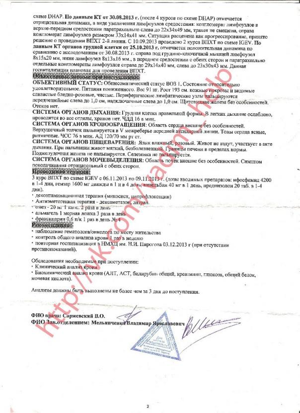Диагноз: Лимфома Ходжкина, нодулярный склероз 2 тип, IIBX ст., с поражением медиастинальных, надключичных, подключичных и подмышечных л\у с обеих сторон. Вадим прошел 8 курсов стандартной химиотерапии, затем еще 7 курсов высокодозной ХТ. За год с лишним ни разу не была достигнута ремиссия, болезнь продолжает прогрессировать; врачи признали в нашем случае аутотрансплантацию стволовых клеток неэффективной. __________________________________________________ __________________________ В данный момент Вадиму требуется лечение дорогостоящим противоопухолевым препаратом ADCETRIS (BRENTUXIMAB VEDOTIN), покупка которого возможна только за границей. Без данного препарата наши доктора оценивают шансы на выздоровление Вадима как очень маленькие. Одна ампула данного препарата стоит 3.300 евро. Для проведения 1 курса химии требуется 3 ампулы. Всего таких курсов нужно около 16. Все наши запасы исчерпаны. Квартира выставлена на продажу, на семье висит крупный кредит. Также мы дали заявки в фонды помощи, обращались в администрацию нашего города, однако они не могут покрыть даже половины всей суммы, требующейся для лечения, а нужно около 8 млн рублей. __________________________________________________ __________________________ У семьи Вадима осталась одна последняя надежда - на простых людей; их участие, понимание, добрые сердца. Обращаемся ко всем добрым людям: не оставьте нас в этой беде. Помогите кто чем может, вместе мы сможем помочь выиграть Вадику эту тяжелейшую борьбу за право на драгоценную жизнь. Web money - R132355504665 Яндекс деньги - 410012056492919 Последний раз редактировалось Альбинa; 05.12.2013 в 19:29.. |