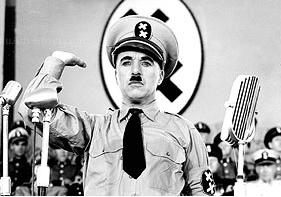 Только что смотрел древний при древний фильм Чарли Чаплина "Великий диктатор". Хоть там и высмеивали Гитлера, и фильм очень старый, но он мне понравился...