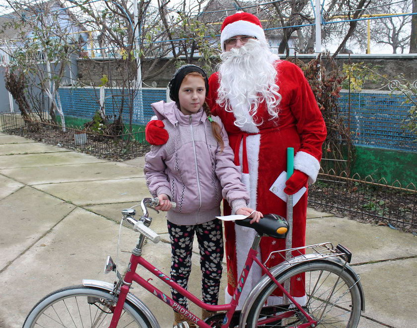 У этой девочки умерла мама, живет с братиком, дедушкой и бабушкой на окраине села. Мечтала о велосипеде - ездить в школу. Мечта сбылась.