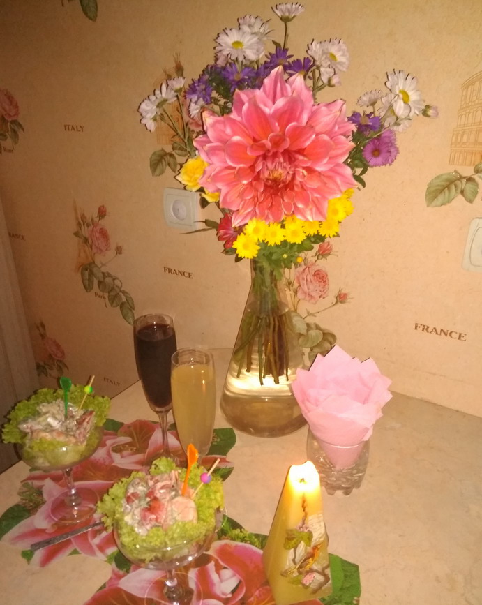 Цветы, вино, вкусная легкая закуска - салатики. А как его проводите Вы? Вложение 5206 |