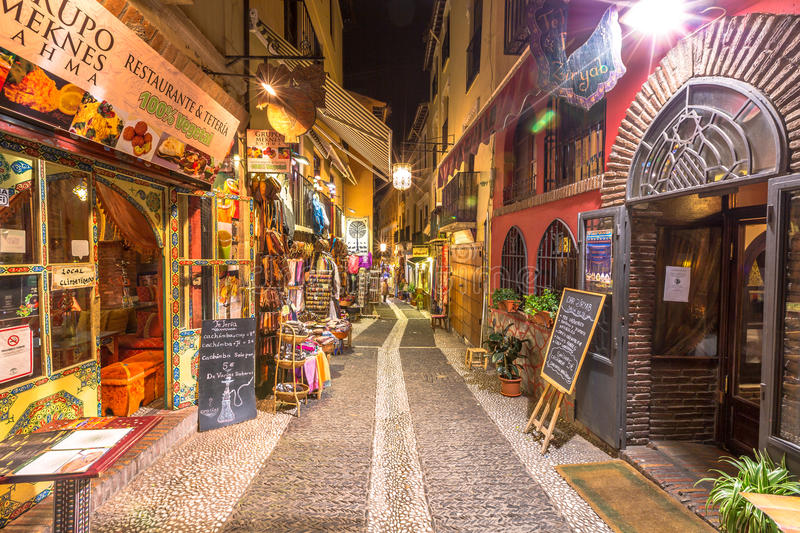 Тихая уютная улочка в центре вечернего города Гранада |