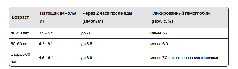 https://avatars.dzeninfra.ru/get-zen...8ad/scale_1200 Натощак: Измерение проводится утром после 8-12 часов голодания. Через 2 часа после еды: Измерение проводится через 2 часа после начала приема пищи. Целевые показатели для мужчин с диабетом Для мужчин с диабетом целевые показатели уровня сахара в крови могут отличаться от нормальных значений. Индивидуальные целевые показатели должны быть определены врачом с учетом возраста, состояния здоровья, наличия сопутствующих заболеваний и риска гипогликемии. Натощак: 5.0 - 7.2 ммоль/л (90 - 130 мг/дл Через 2 часа после еды: До 10.0 ммоль/л (180 мг/дл) https://dzen.ru/a/Z9fBLJRPvxXGkMee#ii_faktor_vliyayuschie_na_yroven_ sahara  |