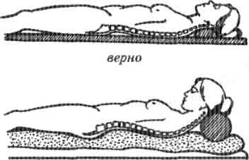 Наиболее подвержен вывихам шейный отдел позвоночника. И опять же не только оттого, что мы много времени проводим в сидячем положении, но и из-за неправильного положения головы во время сна на мягкой подушке. Вложение 869 Поэтому второе правило системы Ниши гласит: подушка должна быть твердой. Подушка может представлять собой валик из дерева, гальки или ваты, обтянутый тонкой материей и помещающийся точно между лопатками и затылком, так чтобы 4й и 3й шейные позвонки лежали на ней (Рис. 74). Это поддерживает естественный изгиб позвоночника, предупреждая его искривления, а заодно и множество других заболеваний. |