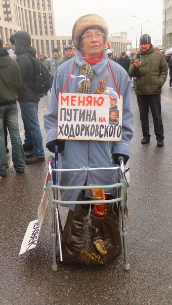 Вложение 378 Митинг за честные выборы 24. 12. 12. Москва. Берите пример с этой старушки. Она пришла на митинг на костылях и весь день так и простояла. Она борется за свои права, так как может. Это лучше, чем унижаться и просить милостыни у чиновников. Те, кто гнет спину, перед всякими чинушами, тот бесхребетная тварь, не достойная ни ничего лучшего. Права не просят, их берут! |