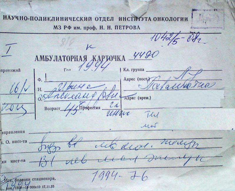 Фото карты должно сейчас появится! Это карта женщины которая мне предоставляла информацию о своем лечении и у неё на карте удаленна фамилия. На моих документах личных присутствуют все данные и выкладывать на всеобщее обозрение я не буду! Всем кому действительно это интересно инужно могу показать при личном общении |