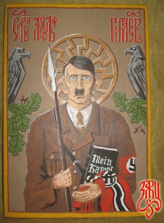 О Падре, вы заблуждайтесь в вашем неведении. Ваша душа слепа, и живет во тьме. Ваш сын на пути к истине. Гитлер был воплощением Исуса Христа, но его опять погубили дети антихриста - евреи. В Москве есть христианская церковь, во главе с самым натуральным батюшкой (правда официальная церковь его уже отлучила), которые молятся на иконы Гитлера. И это большая церковь, и в ней большая паства. Я готов привести вас и вашего сына по лоно господа нашего.