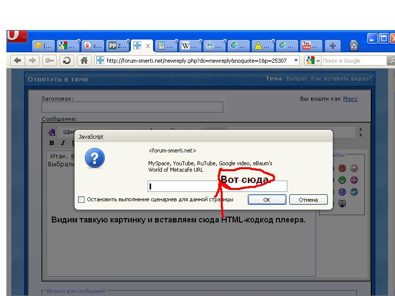 По умолчанию Вопрос. Как вставить онлайн-видео на форум?