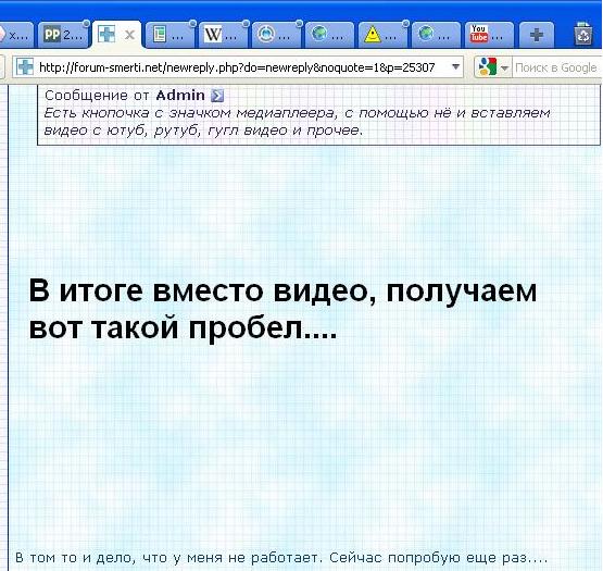 Вставка онлайн видео на форум Admin Про форум жизни 9 31.01.2011 16:03
