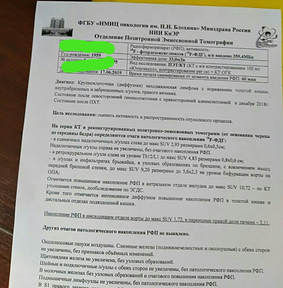 У мамы с декабря месяца 2018 года обнаружена лимфома В-типа. 4 стадия. Была операция, прошли уже R-chop. Не помог( ПЭТ сделали первый раз после линии химии. До этого до операции делали КТ с контрастом. Он ничего не показал! Кроме увеличения лимфоузлов. Сейчас вот все УЗИ хорошие. А ПЭТ... Назначили вторую линию r-gemox. И снова ПЭТ. Скажите, что шансы у нас есть?! |