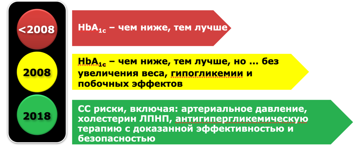 Согласно статистике, от сердечно-сосудистых заболеваний в нашей стране умирает пКакие же параметры работы сердца и сосудов необходимо контролировать всем взрослым, независимо от жалоб?! ❗️артериальное давление (оптимальное АД < 120/80 мм рт.ст). ❗️анализ крови на холестерин общий (<5.0 ммоль/л), холестерин ЛПНП (<3 ммоль/л) и ЛПВП (> 1.0-1.2 ммоль/л), триглицериды (<1.7 ммоль/л) ❗️параметры ЭКГочти половина населения (> 46%) ![]() Добавлено через 21 минуту Как с годами менялись подходы к лечению сахарного диабета и почему нормализация уровня сахара - не самое главное. Раньше: главной задачей лечения сахарного диабета любого типа было нормализовать уровень сахара. И чем ниже, тем лучше. Даже если человеку 80 лет и он перенес 3 инсульта, норма для всех была одна. Как менялись взгляды на лечение сахарного диабета за последние 15 лет. HbA1c - гликированный гемоглобин; СС - сердечно- сосудистые (риски), т. е. инфаркты, инсульты и другие осложления; ЛПНП - липопротеины низкой плотности ("плохая" фракция холестерина). Появлялись новые исследования, постепенно нам стало понятно, что "снизить сахар любой ценой" - не лучшая идея, и иногда лучше оставить сахар немного "завышенным", но зато без падений сахара ниже нормы (например, у пожилых). Стали больше обращать внимания на побочные эффекты терапии, так как накопилось больше данных о них. За последние 5 лет мы продвинулись еще дальше - теперь врачи понимают, что основная причина смерти пациентов с сахарным диабетом 2 типа - это сердечно-сосудистые заболевания и их осложнения (инфаркты, инсульты, тяжелый атеросклероз и его последствия), а значит, лечение должно снижать их вероятность. Например, некоторые современные препараты для лечения сахарного диабета 2 типа могут ее достоверно снижать. Это препараты группы иНГЛТ-2 (Форсига, Джардинс, Инвокана, Суглат и др.), о них я писала ранее, а также препараты группы аГПП-1 (Оземпик, Виктоза, Трулисити, Ребелсас и другие), которые сейчас достаточно сложно найти и купить из-за трудностей логистики. Многие рекомендации по лечению сахарного диабета 2 типа рекомендуют назначать их сразу (при отсутствии противопоказаний), или менять старое лечение, даже если оно помогает удерживать сахар, на них. Конечно, если есть возможность эти препараты выдавать по месту жительства или покупать за свой счет - цена "кусается". Также эндокринологи теперь уделяют особое внимание уровню холестерина и его фракций, особенно ЛПНП (липопротеинам низкой плотности), или "плохому" холестерину. Даже если "нормы" лаборатории разрешают его повышение немного выше 3 ммоль/л, для пациента с сахарным диабетом это недопустимо, так как у них даже такой уровень ЛПНП может иметь плачевные отдаленные последствия. Кроме этого, на продолжительность жизни пациентов с сахарным диабетом оказывает существенное влияние вес, наличие диабетических осложнений и сопутствующих заболеваний. Например, очень много гастроэнтерологических осложнений высокого сахара - о них я буду писать позже (подпишитесь, чтоб не пропустить). Если раньше эндокринолог у пациентов с диабетом занимался только "сахаром" , теперь нам приходится вникать во все, чтобы вовремя "передать" пациента коллегам для лечения других проблем. https://dzen.ru/a/ZC0lgWRG_FVSF8Cv Добавлено через 5 минут Достижение уровня СК как у здоровых людей, при стаже диабета более 10 лет приводит к гипам, а 
